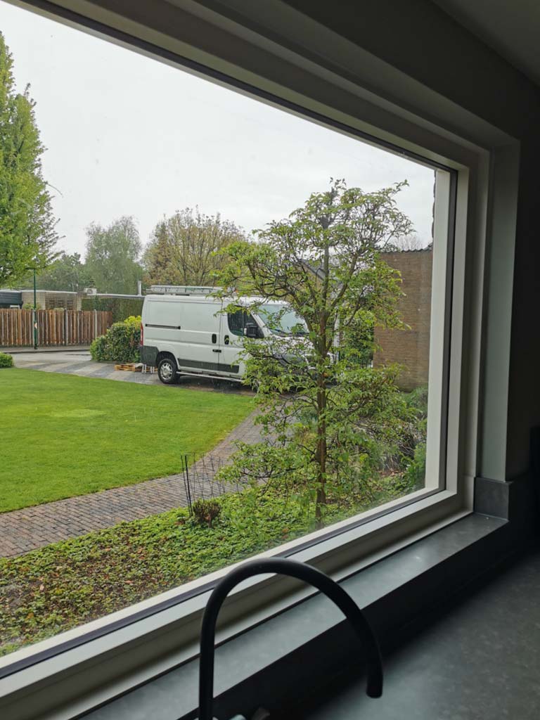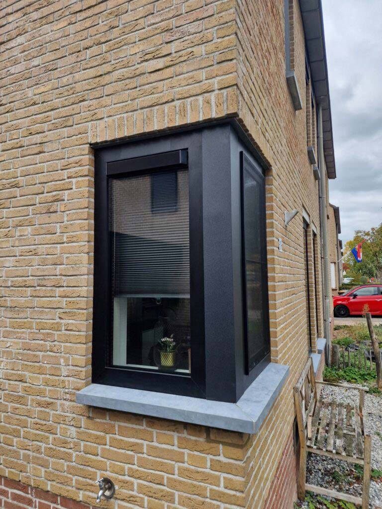 U naszego klienta w Tilburgu wymieniliśmy wszystkie okna na nowe aluminiowe okna w kolorze czarnym, wyposażone w wysokiej jakości pakiet szyb trzyszybowych. Dodatkowo wymieniliśmy wszystkie zewnętrzne parapety, wykonując je z kamienia naturalnego. Zamontowaliśmy również rolety w tym samym kolorze wraz z odpowiednimi wykończeniami zewnętrznymi. Całość nadaje budynkowi nowoczesny i trwały wygląd.